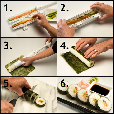 Enrolar: Usando a esteira de bambu, comece a enrolar firmemente a partir do lado com os recheios. Pressione suavemente, mas com firmeza, para formar um rolo compacto.