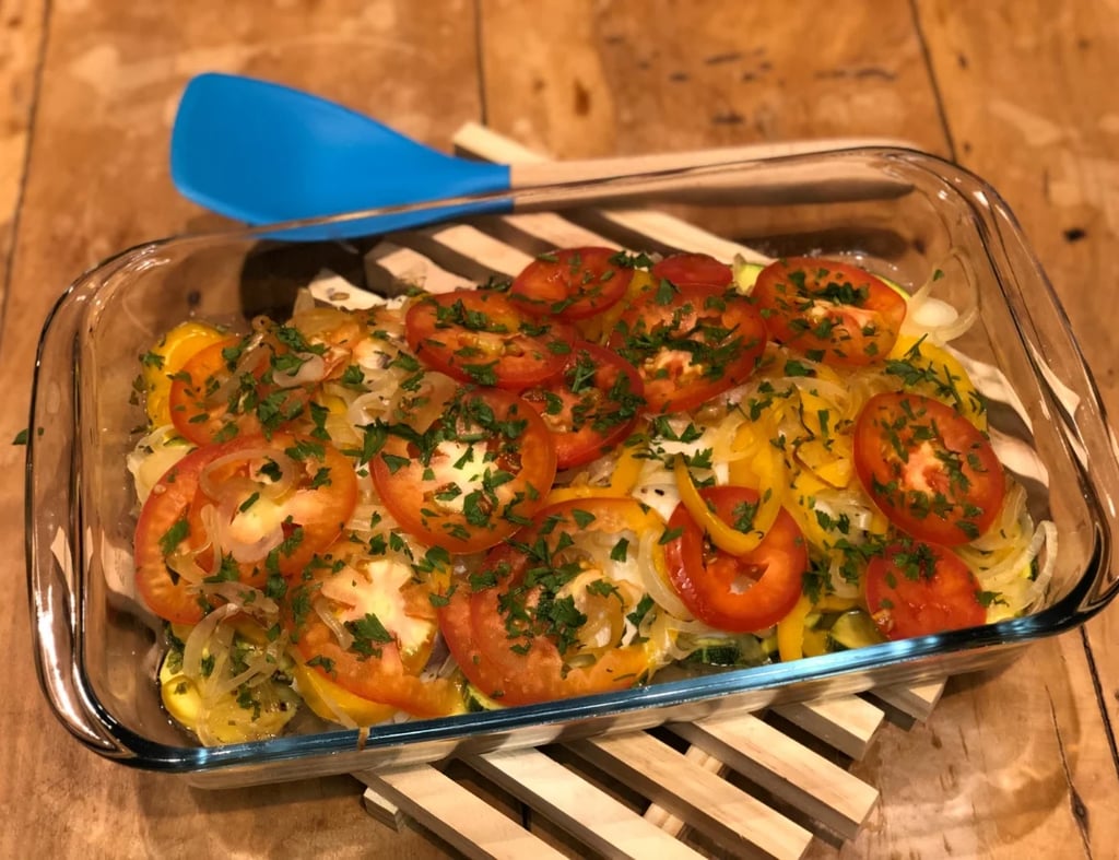 2. Filé de Anchova Assado com Legumes 🥔🍅