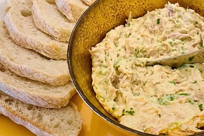 Misture tudo até formar um creme liso. Sirva com torradas, pães, biscoitos ou como recheio de sanduíches.